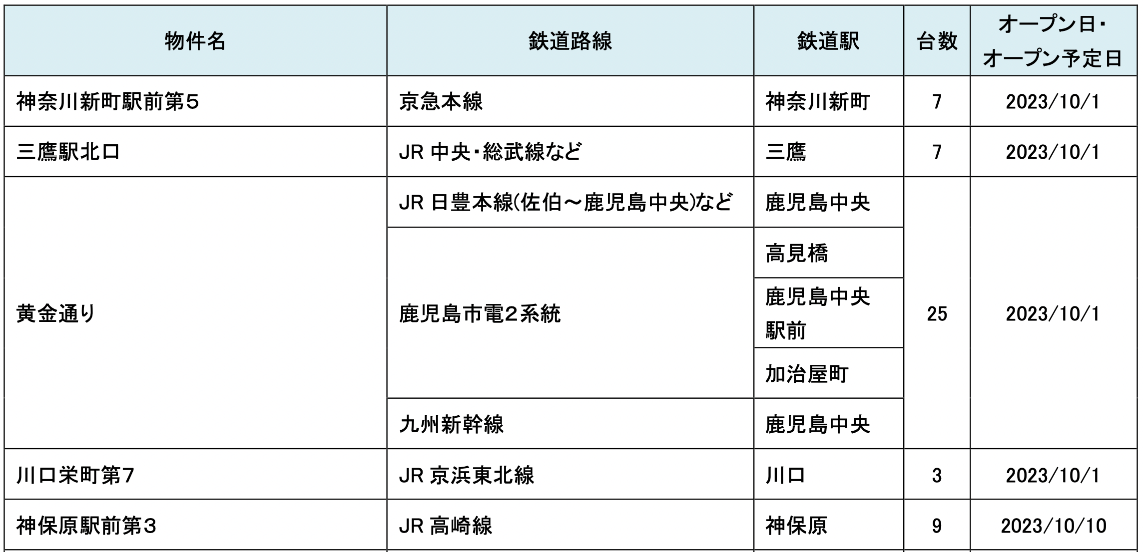 駐車場およびカーシェアステーションのオープン予定については毎月第5営業日にお知らせいたします。