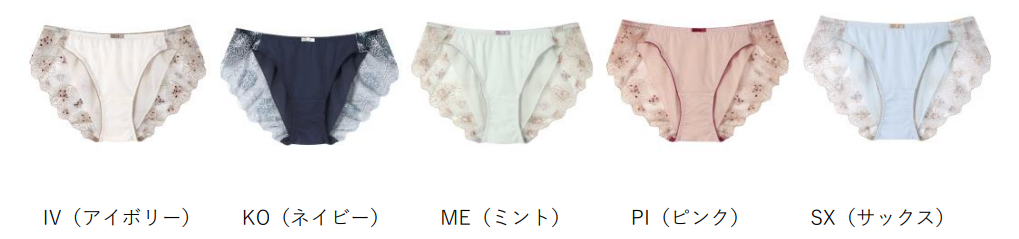 カラー: IV(アイボリー)・KO(ネイビー)・ME(ミント)・PI(ピンク)・SX(サックス)