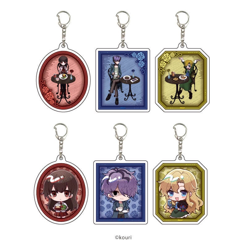大きさおよそ6.5cmのアクリルキーホルダーは、その形にもご注目! イヴは楕円、メアリーは八角形などそれぞれ異なるデザインからは、アンティークの絵画にも似たクラシカルな雰囲気も感じられるように♪