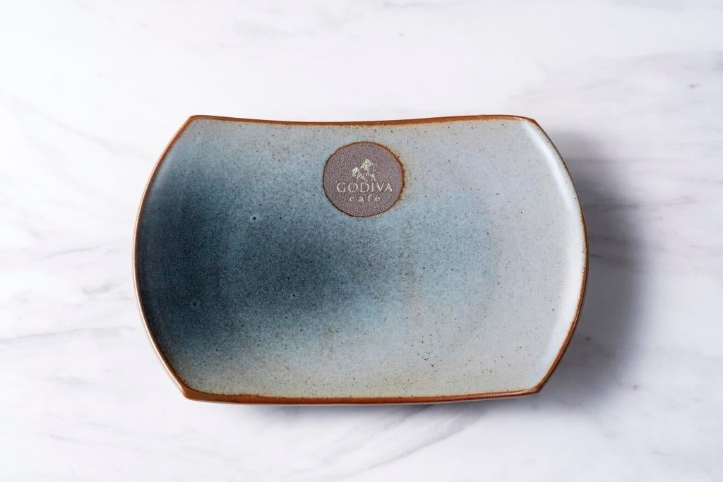 越前焼にGODIVA caféのロゴを刻印した、趣のあるオリジナルデザインのお皿で提供する、ゴディバのさまざまなチョコレートとドリンクをお楽しみいただける期間・店舗限定のテイスティングセットです。