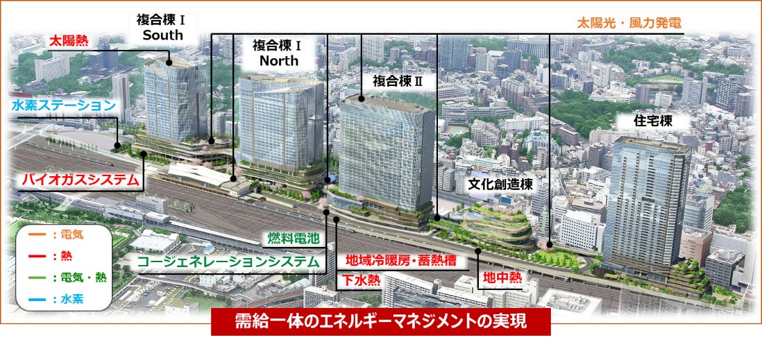 複合棟Ⅰおよび高輪ゲートウェイ駅周辺エリアを2024年度末(2025年3月)に開業し、その他の棟(複合棟Ⅱ・文化創造棟・住宅棟)および各棟周辺エリアを2025年度中に開業します。