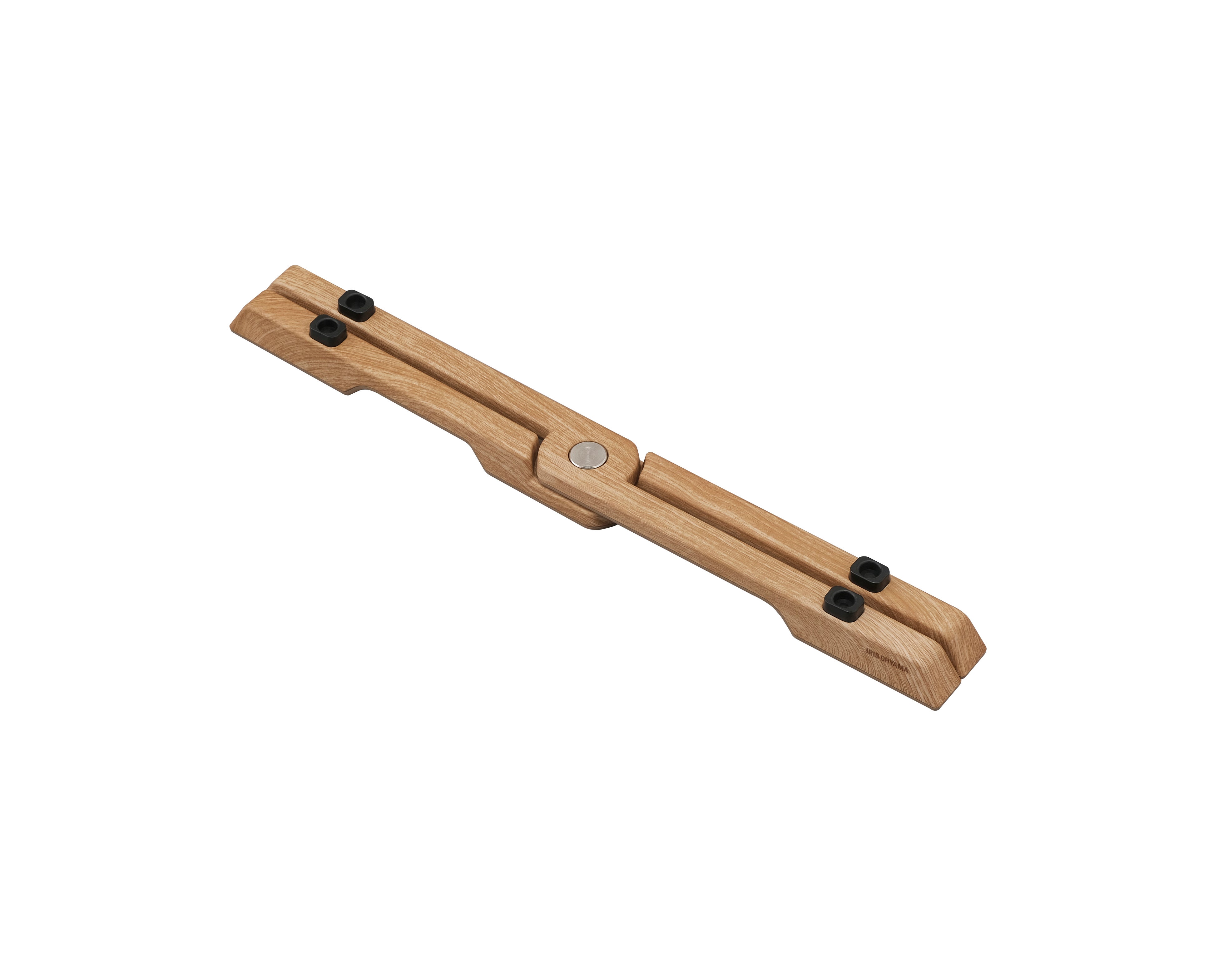 「自宅でもキャンプをしているような特別感や高揚感を感じてほしい」という開発コンセプトから、プレートを置く脚は、アウトドア用の鍋敷きや木の台をイメージしています。温かみを感じる木目調のデザインを採用しており、料理を華やかに引き立てます。