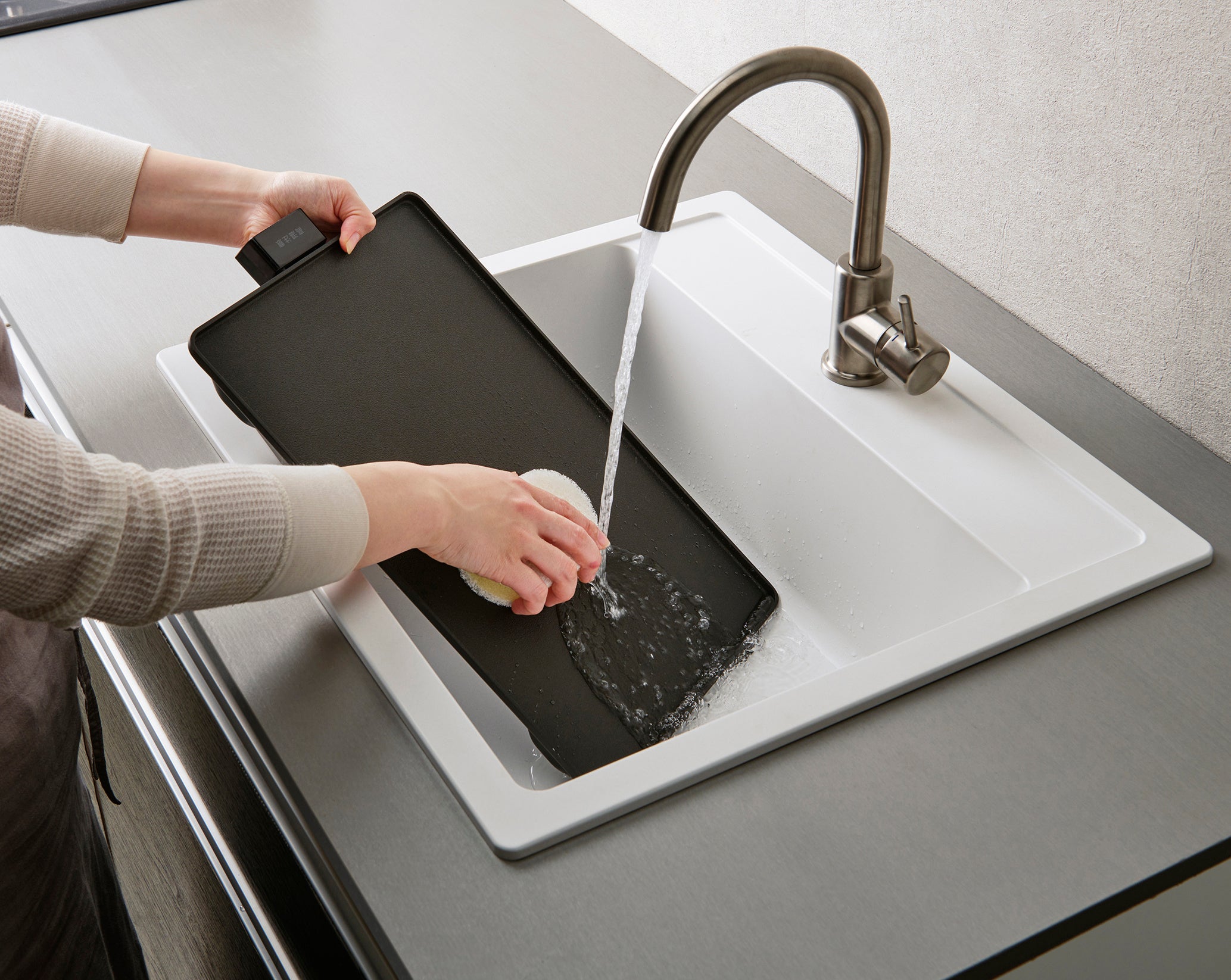 プレートは、フッ素樹脂コーティング加工でこびりつきにくく、取り外して丸洗いができるのでお手入れが容易です。本体質量は約2.6kg(※5)と軽量で出し入れしやすく、朝・昼・晩とシーンを問わず手軽にお使いいただけます。