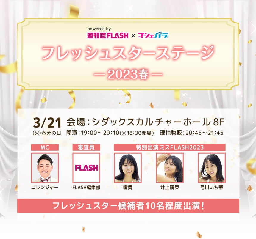 光文社FLASHとマシェバラがお送りする2023年のグラビアシーンで活躍するスターを発掘するステージ。