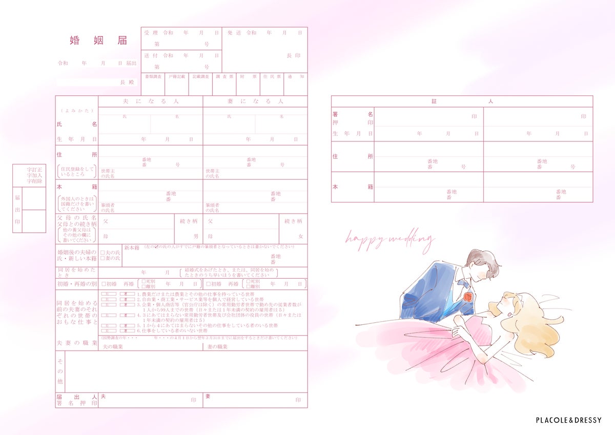 【10万ダウンロードを突破!】PLACOLE&DRESSYオリジナル 『プラコレ婚姻届』に新デザインの婚姻届に8月の新デザインが登場!ダウンロード無料!