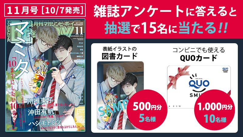 株式会社リブレ(本社:東京都新宿区、代表取締役社長:太田歳子)は、マミタ先生が表紙の雑誌「マガジンビーボーイ2022年11月号」を10月7日に発売いたします。https://www.b-boy.jp/magazine/202411