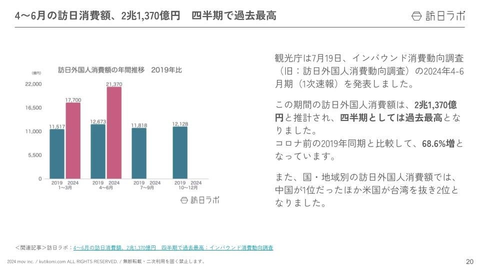 4〜6月の訪日消費額、2兆1,370億円 四半期で過去最高