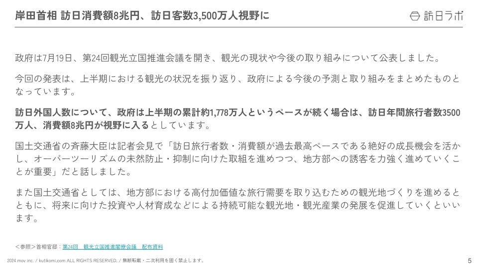 岸田首相、訪日消費額「8兆円」視野に:観光・インバウンドの最新動向がわかる!インバウンド情報まとめ「2024年7月後編」を訪日ラボが公開