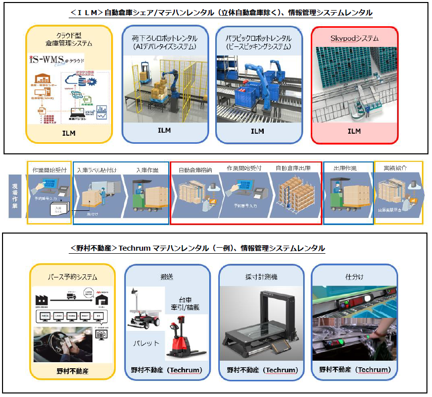 なお、「Techrum(テクラム)」へILMが新たに参画し、ILMが提供するマテハンロボット及びWMS も下図の通り利用可能となります。立体自動倉庫のシェアリングサービスと同様に、設備準備のための初期費用や固定費がかからずに最新の自動化システムの導入を進めることができます。