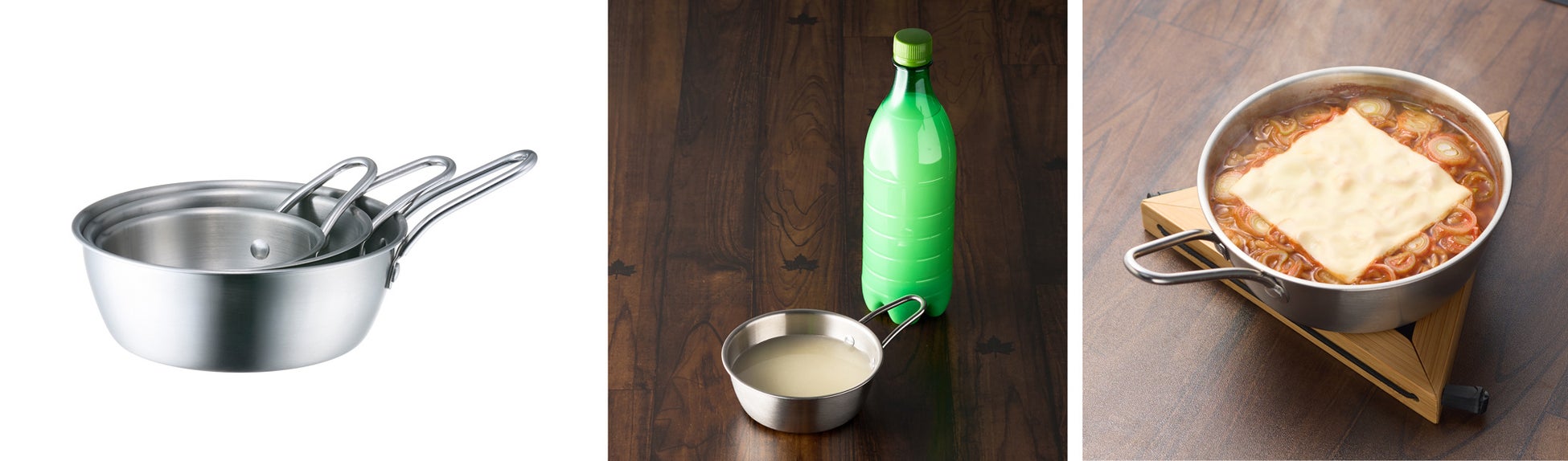 最大容量660mlで一人鍋やオーブン料理にも!直火対応の取っ手付きステンレス製カップ「マッコリステンカップ」3サイズ 新発売!