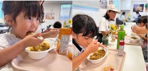 子だもたちの笑顔とともにカレーを楽しむ姿が見られました。