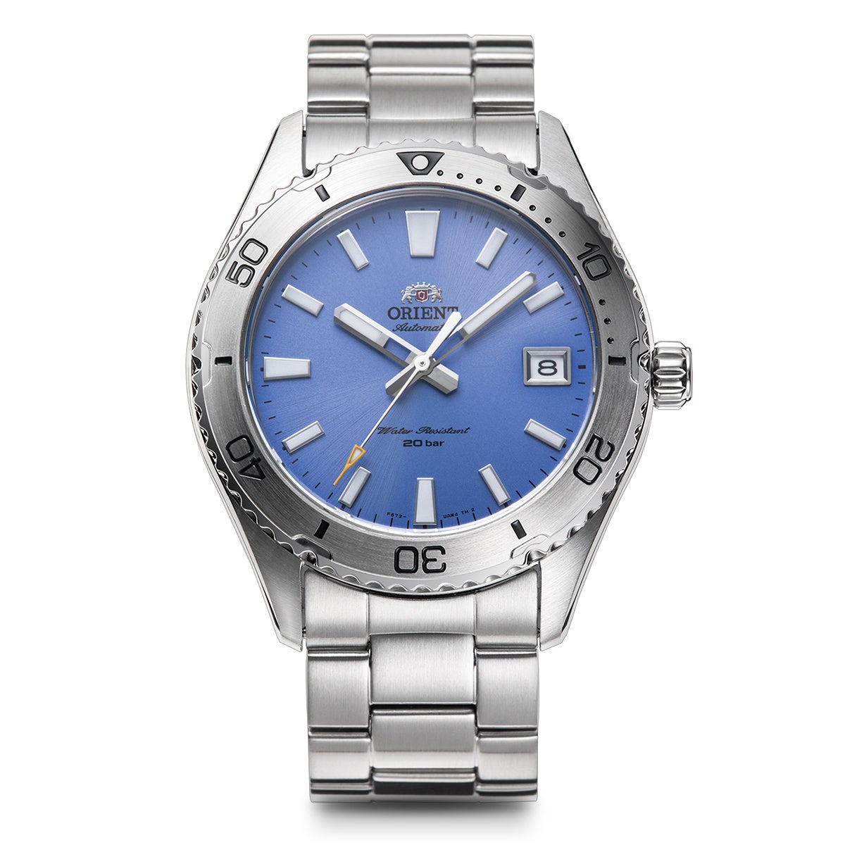 新作の特長は、タウンユースやファッションアイテムとして人気が高いダイバーデザインに新たな展開をもたらす、“コンパクト”、“シンプル”、“ライト(軽快感)”をテーマにしたスタイリングです。まずケースのサイズは、新作では「オリエントマコ」シリーズで中心を占めていた41.8mmのモデルに比べて、コンパクトで男女を問わず着けやすい直径39.9mmが用いられています。