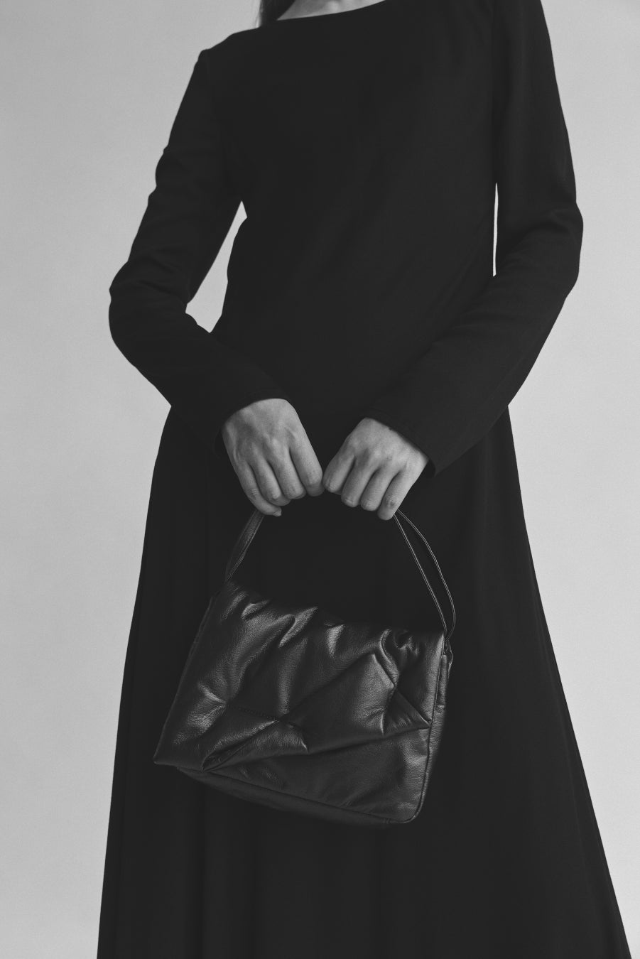 Yohji Yamamotoのギャザードレスからインスピレーションを受けたパイナップルのような「ANANAS (アナナス/フランス語でパイナップルの意)」の最小サイズ。ギャザーが生むレザーのユニークな表情。