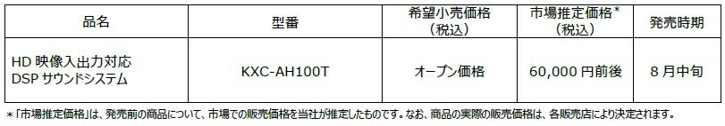 DSPサウンドシステム「KXC-AH100T」を発売