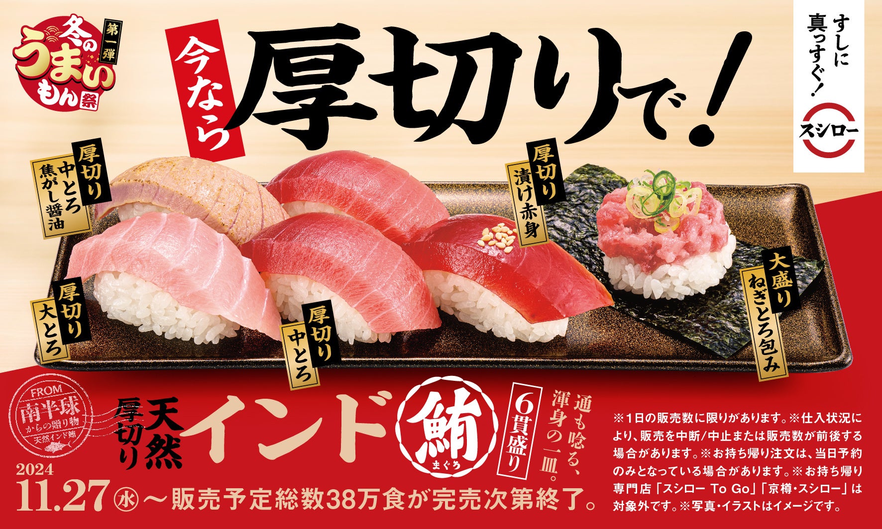 冬のうまいもん祭開幕!今ならお値段そのまま!天然インド鮪が厚切りになって登場!さらに、「大とろ」が税込120円~で食べられる!『冬のうまいもん祭 第一弾』開催!