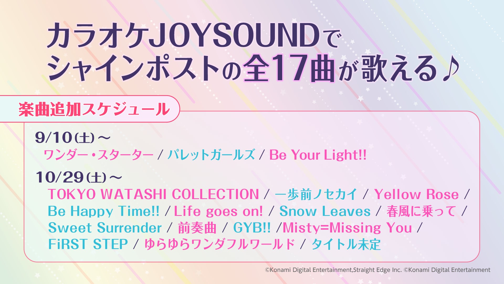 - 10月29日(木)からカラオケJOYSOUNDに14楽曲を実装!計17楽曲を歌うことが可能に!