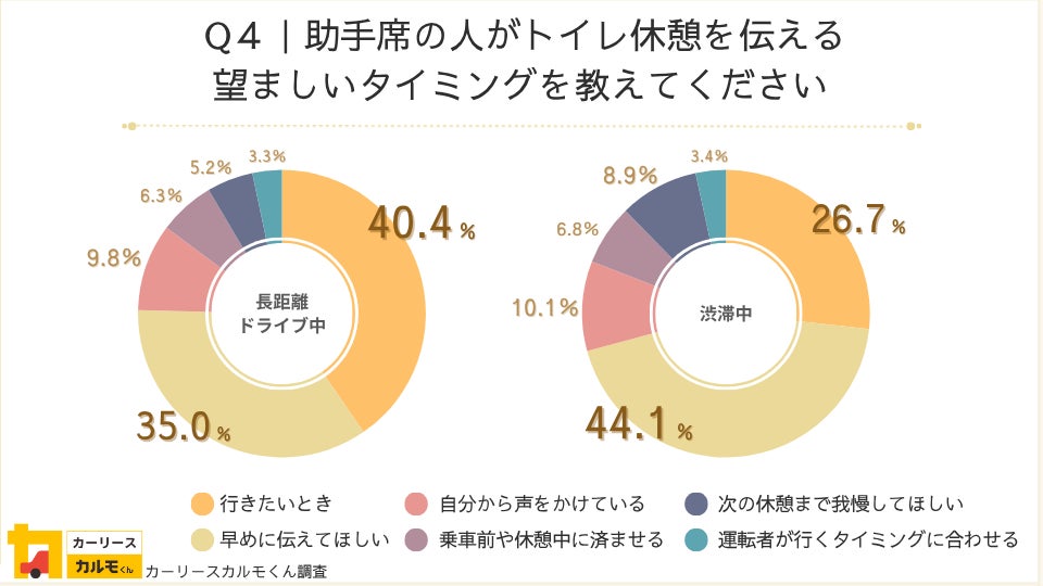 Q4: 助手席の人がトイレ休憩を伝える望ましいタイミングを教えてください