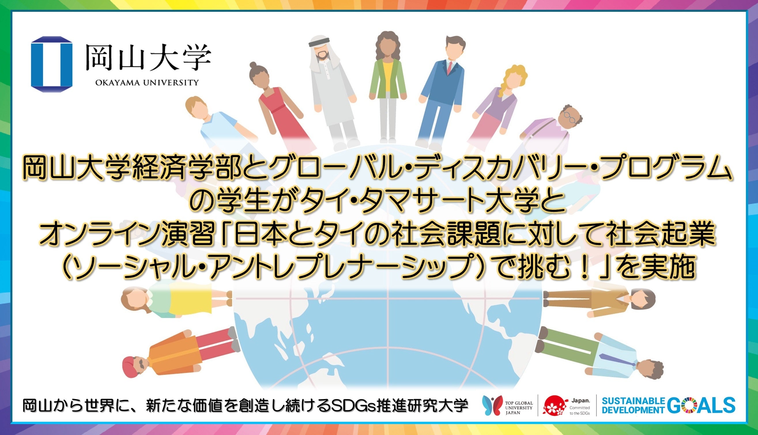【岡山大学】経済学部とグローバル・ディスカバリー・プログラムの学生がタイ・タマサート大学とオンライン演習「日本とタイの社会課題に対して社会起業(ソーシャル・アントレプレナーシップ)で挑む!」を実施
