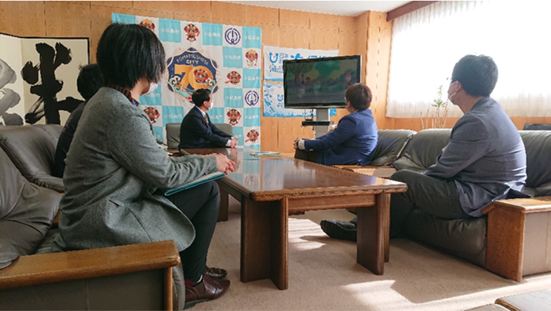海ノ民話のまち 徳島県小松島市のアニメ「ゼンパはん」が完成!認定委員長が中山俊雄市長を表敬訪問しアニメを披露