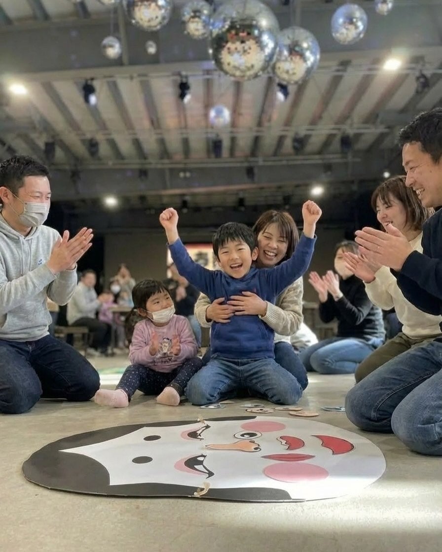 親子で大盛り上がり!節分「巨大福笑い」に挑戦