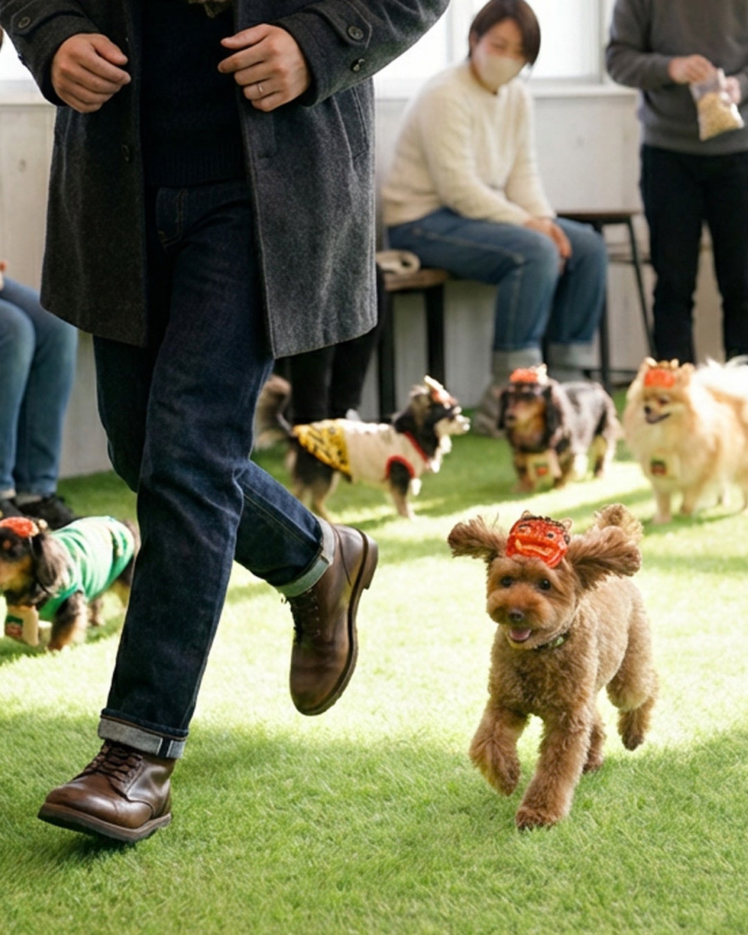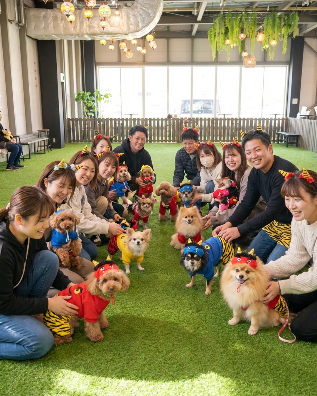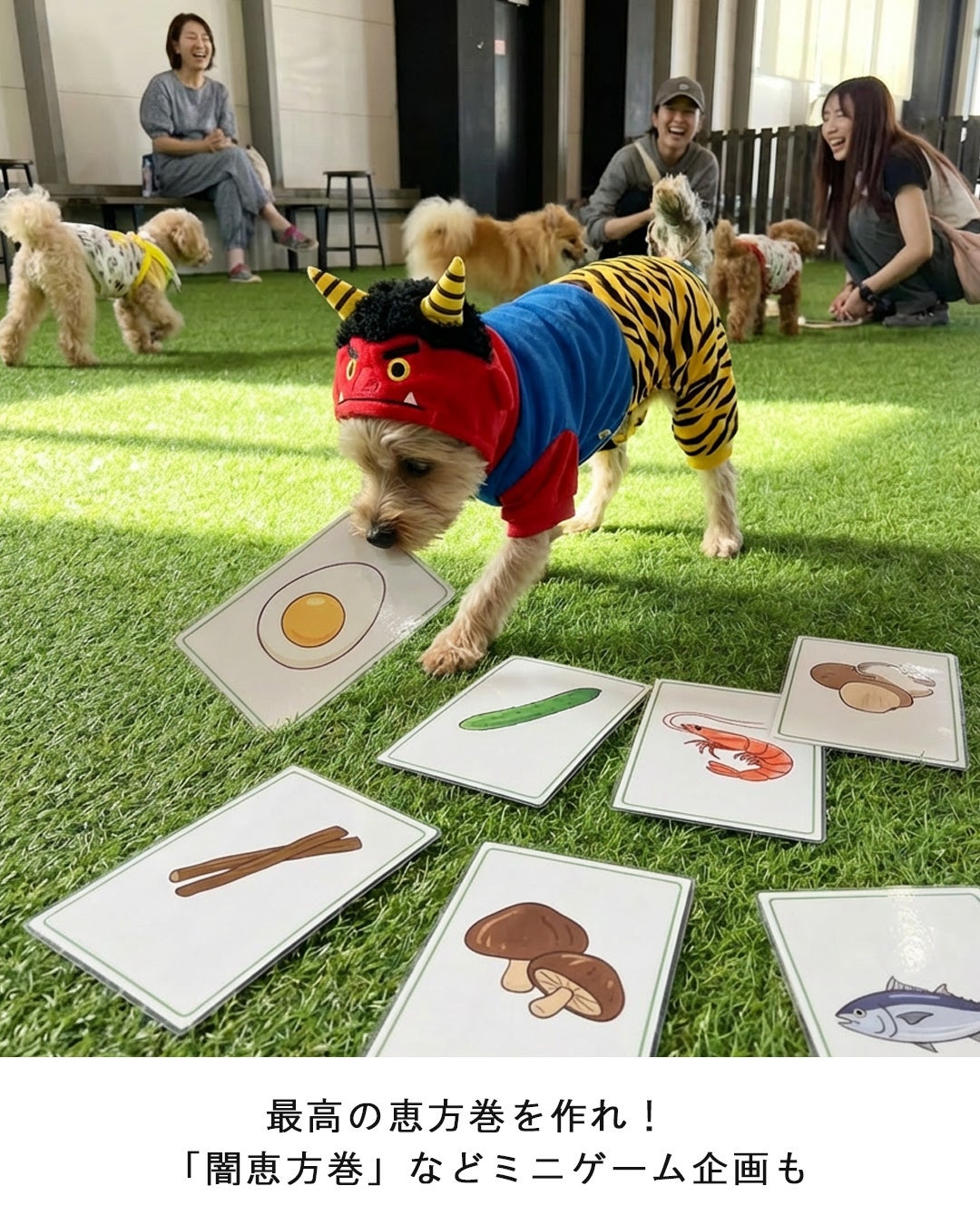 同じ時期・同じサイズ感のわんちゃん同士で交流しながら、節分ならではのミニゲームも楽しめる特別な時間です。
