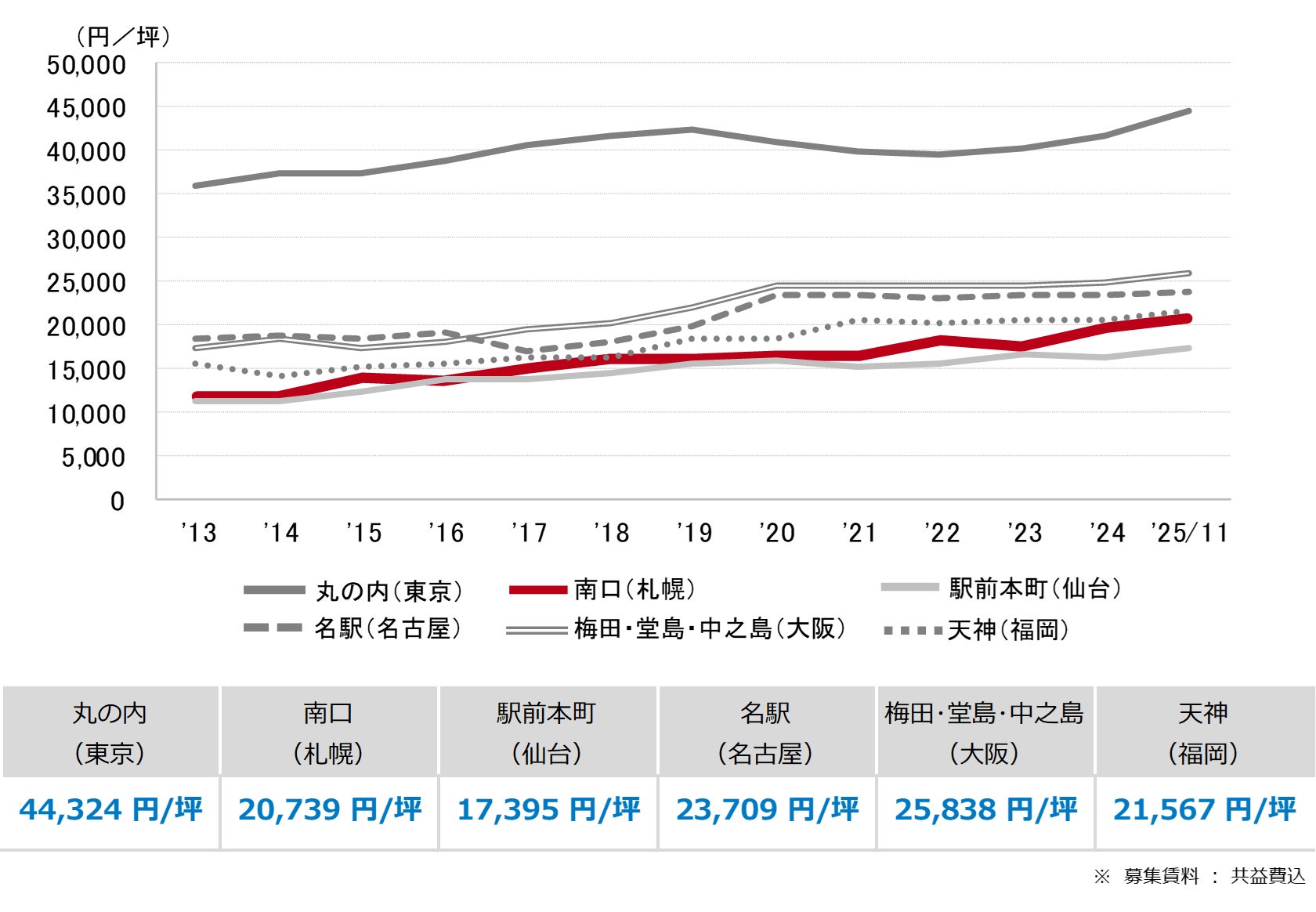 <募集賃料の推移(6大都市 大規模ビル・主要駅前地区)>