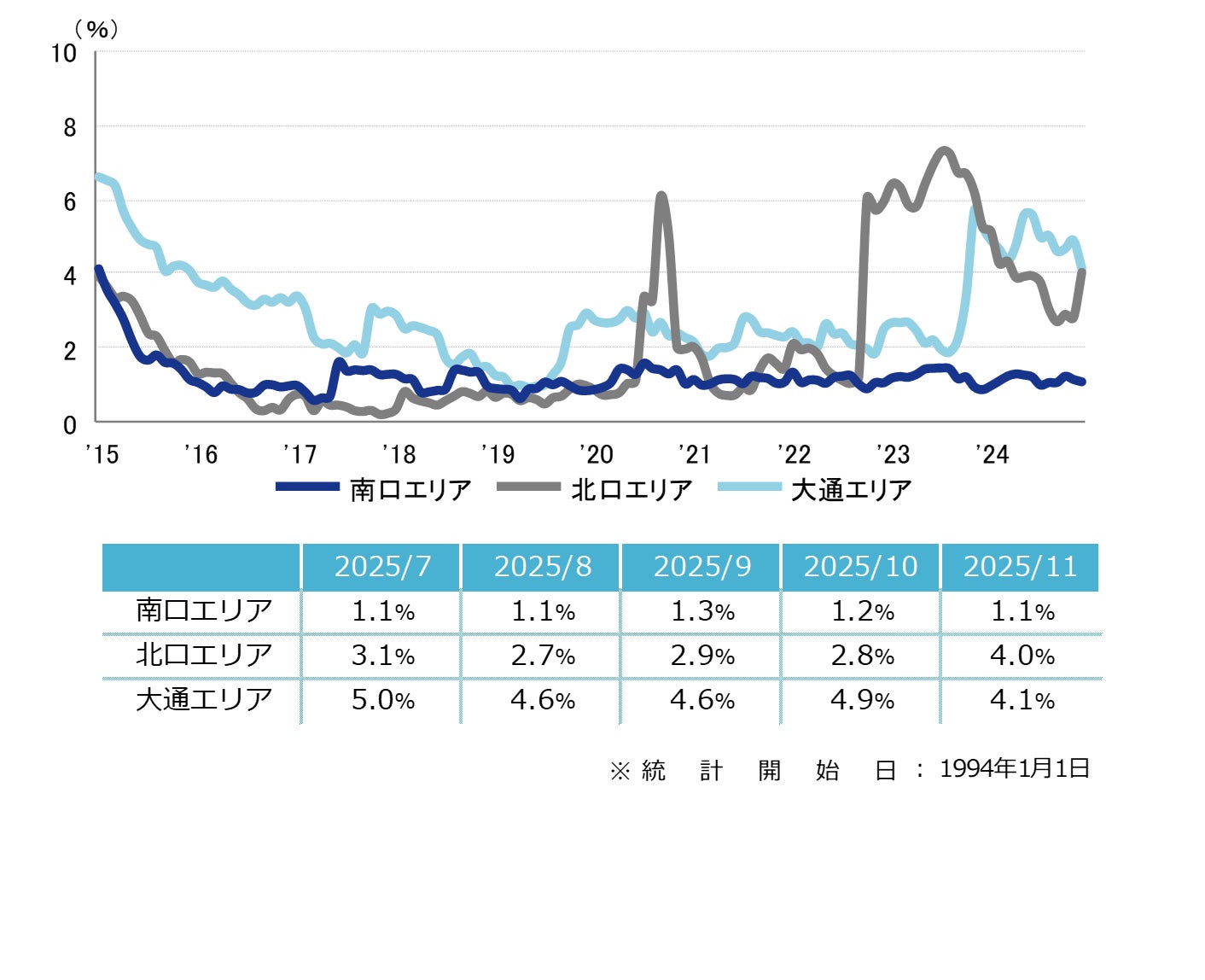 空室率 2ヵ月連続で小幅な低下 「北口」は1.2ポイントの大幅な上昇