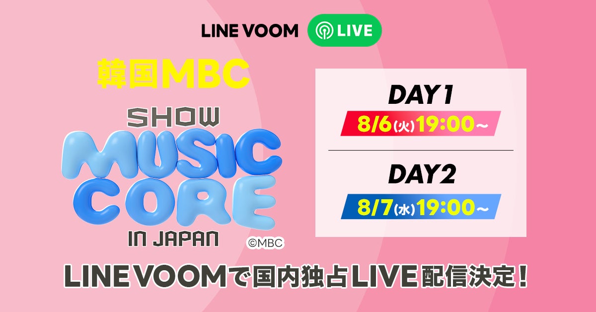 LINEヤフー株式会社は、「LINE」内のショート動画プラットフォーム「LINE VOOM」にて、『2024 Show! Music Core in JAPAN』の2日間にわたるライブステージ全編を国内独占にてアーカイブライブ配信します。