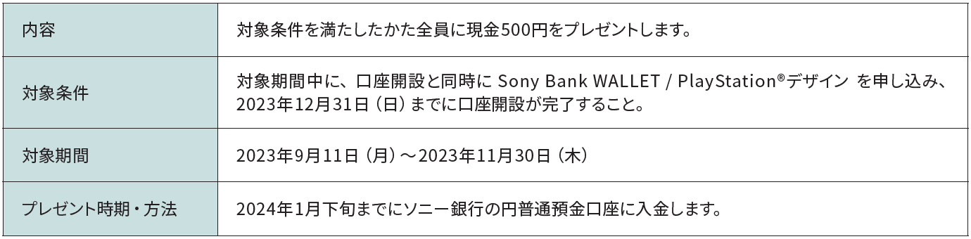「Sony Bank WALLET / PlayStation®デザイン限定 口座開設で今ならもれなく500円プレゼント」キャンペーン実施のお知らせ