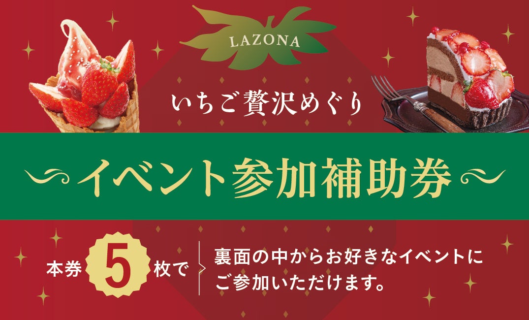対象のいちごメニューをご注文・お買上げでイベント参加補助券をお渡しいたします。5枚集めると