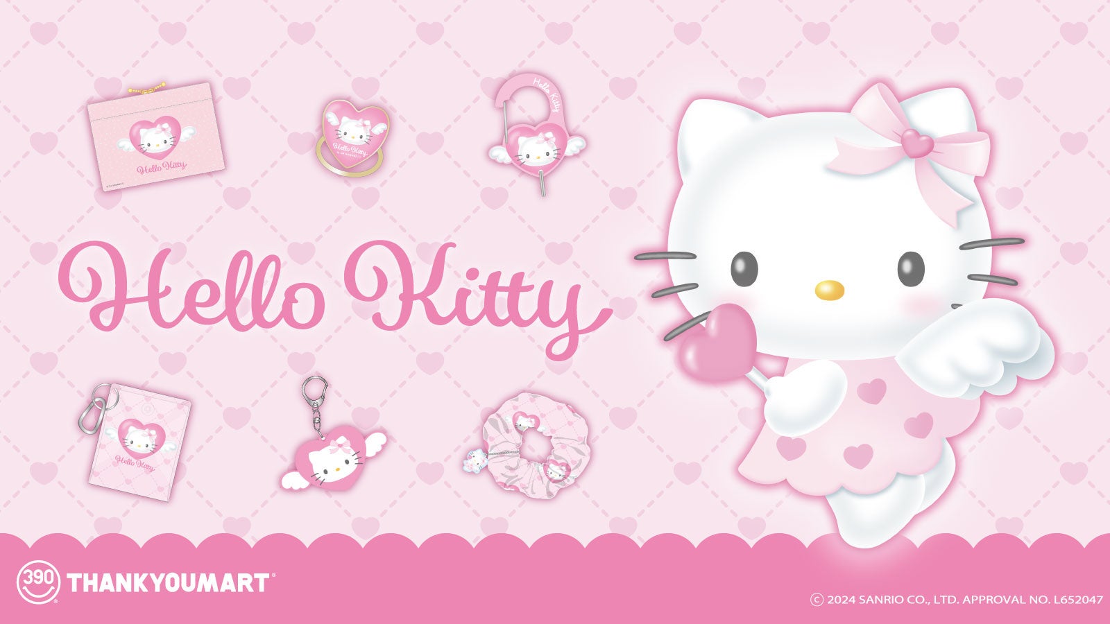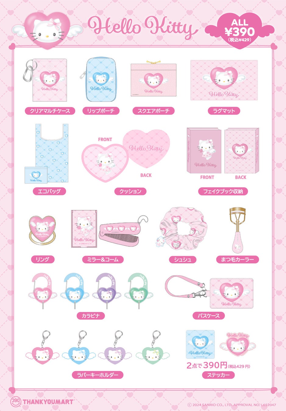 「ハローキティ」50周年記念コラボ企画第2弾!キティちゃんがエンジェルになりきった限定アイテムを全品390円(税込429円)でサンキューマートより新発売