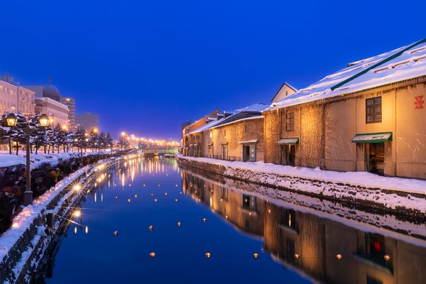ノスタルジックな小樽の街並みが優しく照らされる「小樽雪あかりの路」は、小樽の冬の風物詩。街中に灯る無数のスノーキャンドルの灯りがロマンチックで、手作り感のある温かい雰囲気が人気を集めています。