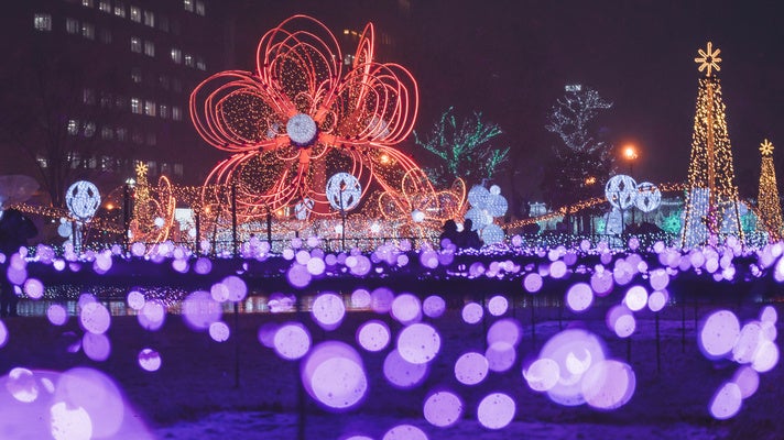 イチョウの街路樹やクリスマスツリーなどのオブジェが、数十万個(前回2024年は77万個)の光で雪とともに彩られる様子は圧巻の一言。会場によって異なりますが、例年11月下旬から3月中旬までと長期間開催され、冬の札幌観光を華やかに演出してくれます。