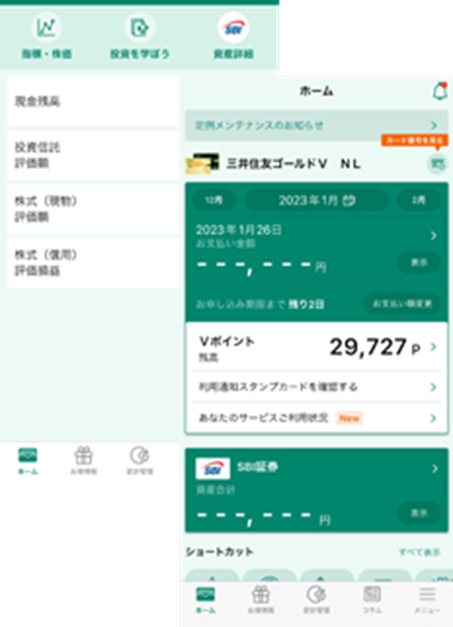 ② 三井住友銀行アプリ、Vpassアプリとの証券サービス連携