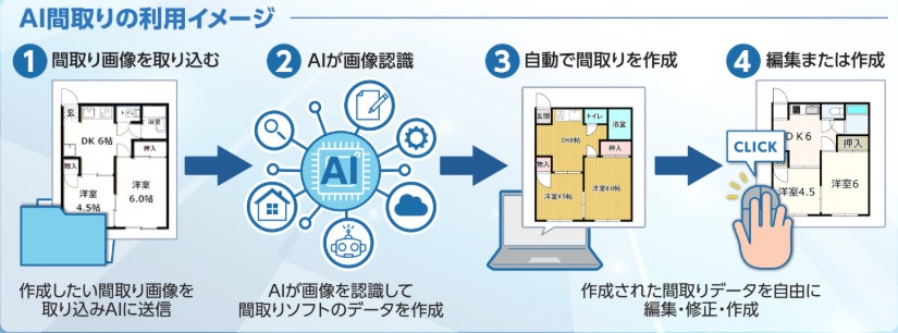 「いえらぶAI間取り」は、作成する間取りの画像を取り込むことでAIが自動で間取りを認識し、自動で作成できる機能です。