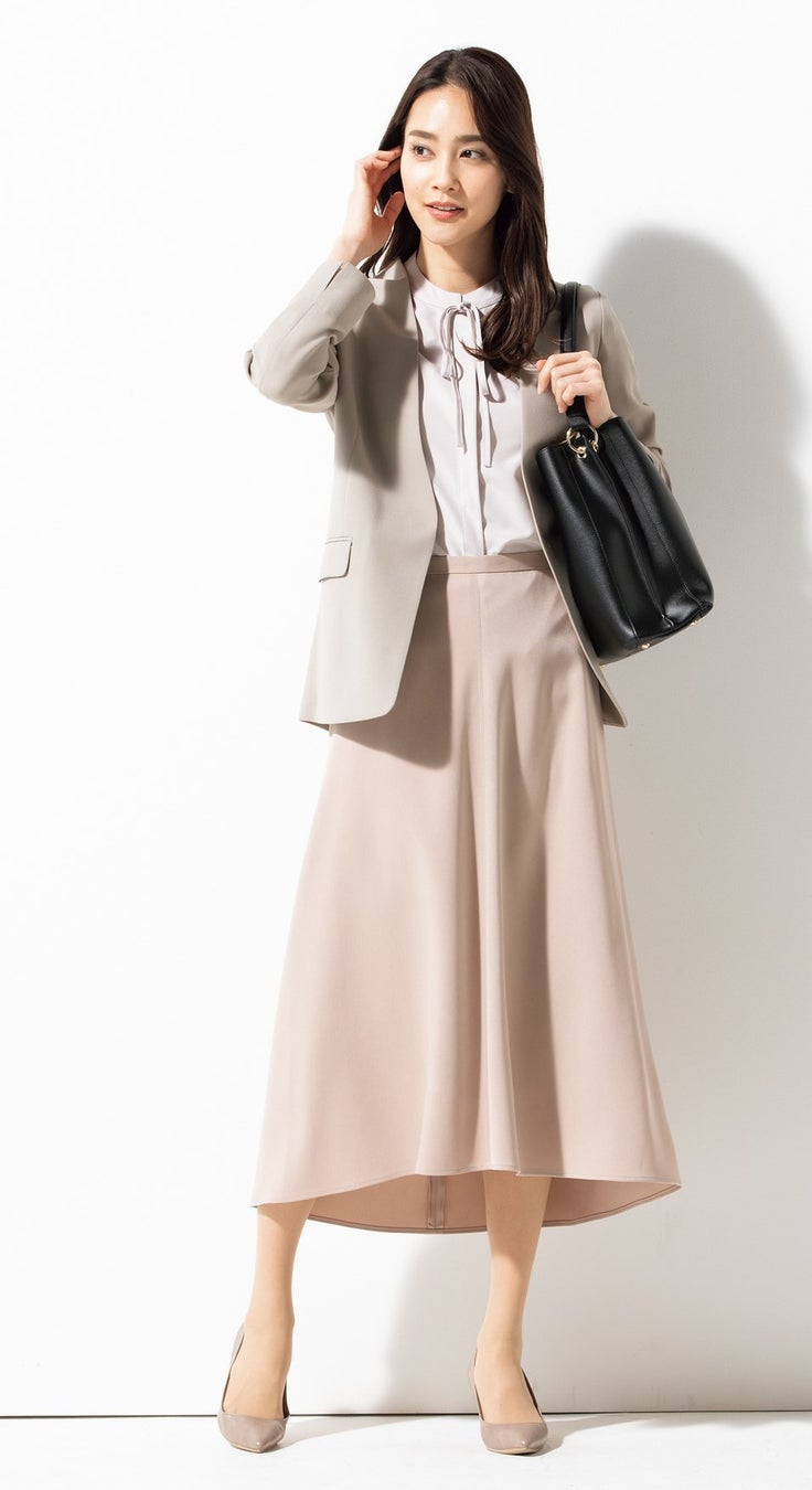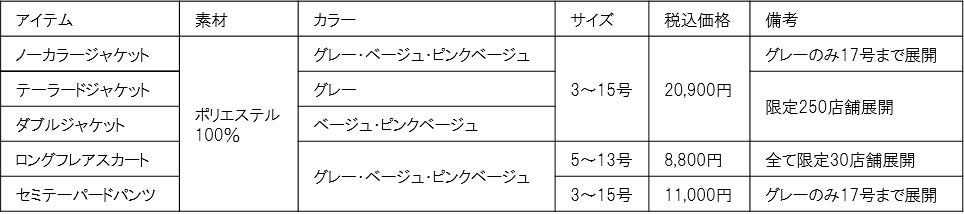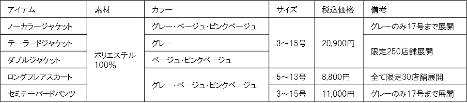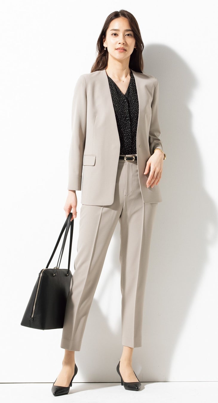 働く女性のキモチに寄り添う「MeWORK(ミワク)」プロジェクトから、夏に向けたセットアップをご用意。今回は、通気性の高さが特長の「トロピカル素材」を使用。ナチュラルなシワ感で「カジュアル感」を演出し、近年の働く女性からの需要が多い、1着で「きちんと感」と「カジュアル感」を備えたシーンレスなセットアップを目指しました。型紙はONでもOFFでもお召いただけるようダブルジャケット・テーラード・ノーカラージャケットをご用意。ボトムスもトレンドのロングフレアスカートと、かっちりしすぎないセミテーパードパンツの2型を展開し、「リラックス感」と「きちんと感」のある装いを楽しめます。また、 「洗える・防シワ・ストレッチ」に加えて、「UVカット」など、夏に嬉しい機能性もあり、働く女性の「あったらいいな」を詰め込んだアイテムです。