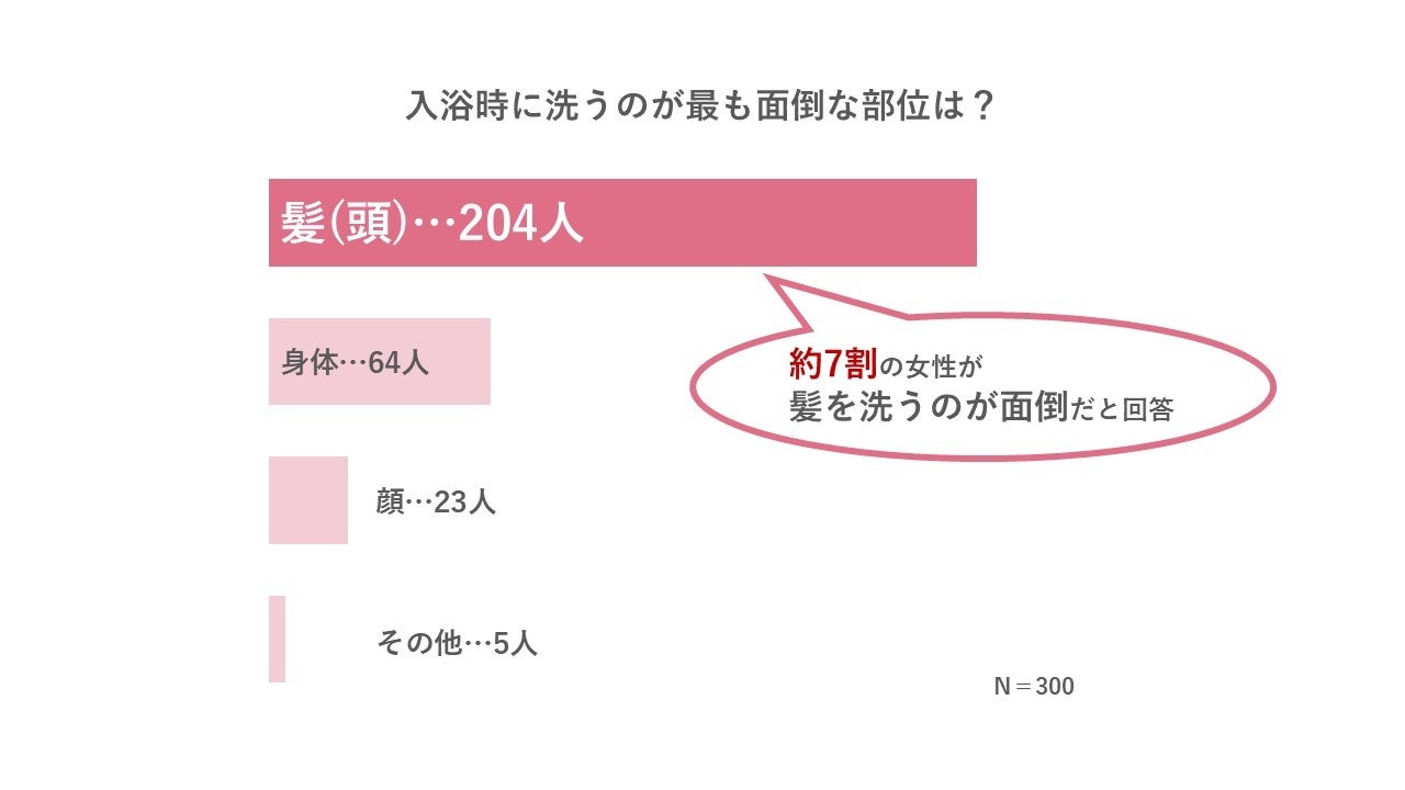 ・約7割が「面倒くさい」と回答した“入浴時のケア部位”は「頭(髪)」