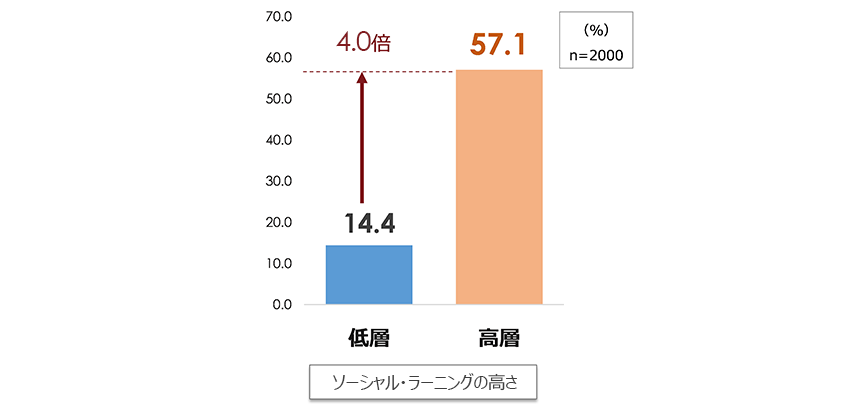 図表3.ソーシャル・ラーニングの高低と幸せな活躍層の割合