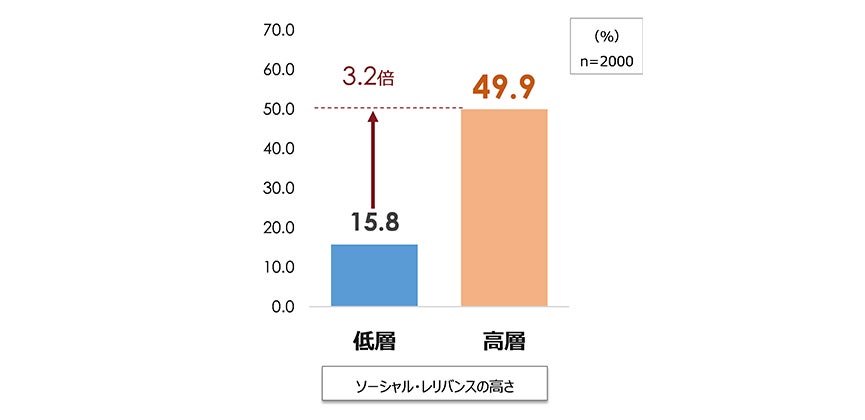図表7.ソーシャル・レリバンスの高低と幸せな活躍層の割合