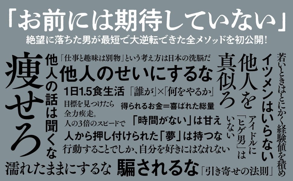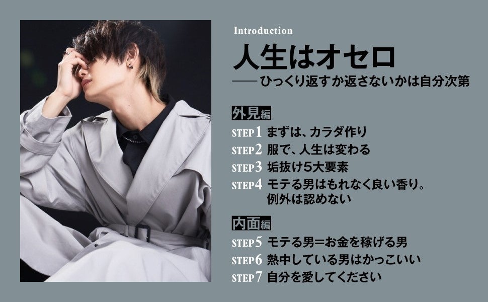 学力がなくても経済的成功はできます。性格も変えられます。薔薇色の人生を送ることは、理論上、誰でも可能なんです。」と、自身の経験をもとに語る彼の、現時点で知りうる“最速で人生垢抜ける方法”を7つのステップで紹介。