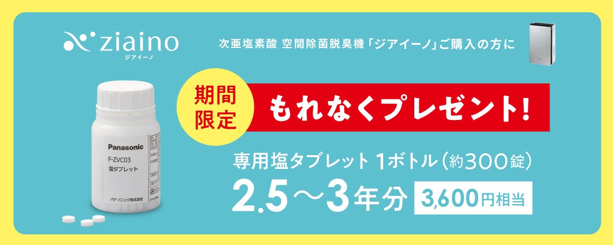 「ジアイーノ」をご購入の方にもれなく専用塩タブレット1ボトルをプレゼント【4/29~キャンペーン開始】