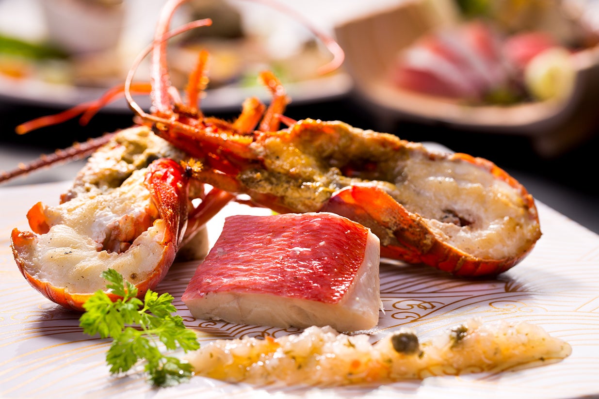 - 魚料理:伊勢海老と金目鯛のブイヤベース