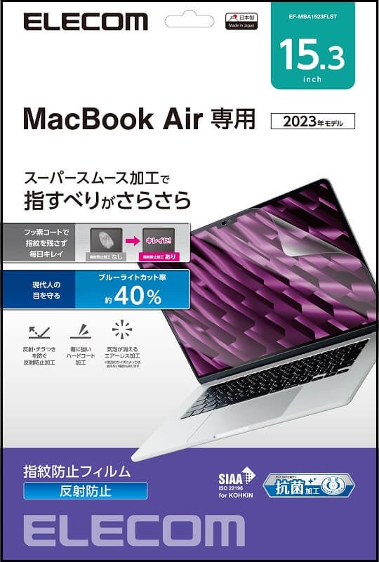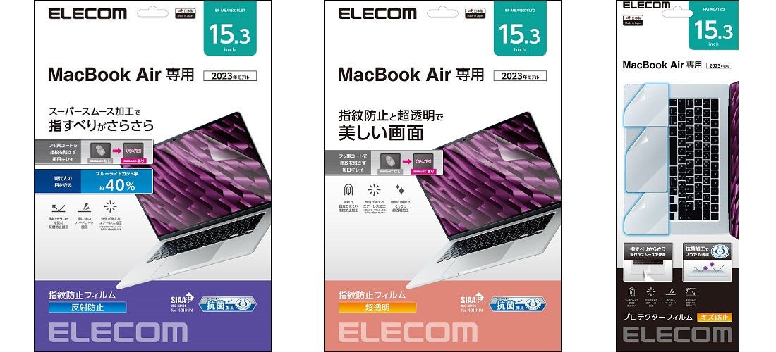 エレコム株式会社(本社:大阪市中央区、取締役社長:柴田幸生)は、MacBook Air 15.3inch 2023モデル専用の液晶保護フィルムとプロテクターフィルム、計3アイテムを新発売いたしました。