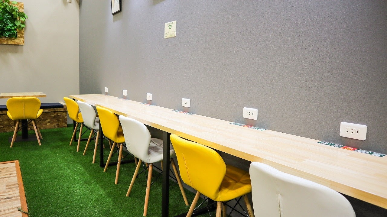 快適な環境:全席に電源を完備し、Wi-Fiも無料で利用可能。