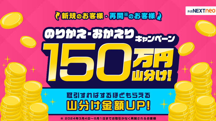150万円山分け!のりかえ・おかえりキャンペーンを開始!