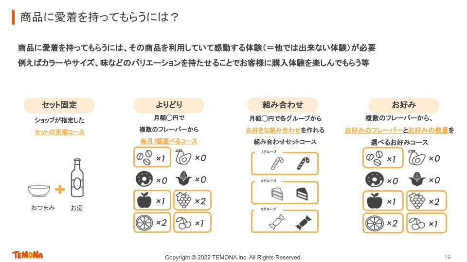 第2部はテモナ株式会社の中田氏から、化粧品・健康食品分野の事業者様に向けて、月商1,000万円への売上アップに向けて事業を着実に成長させるためのポイントや、必要なサービスの設計面や運用面のポイントを解説いたします。