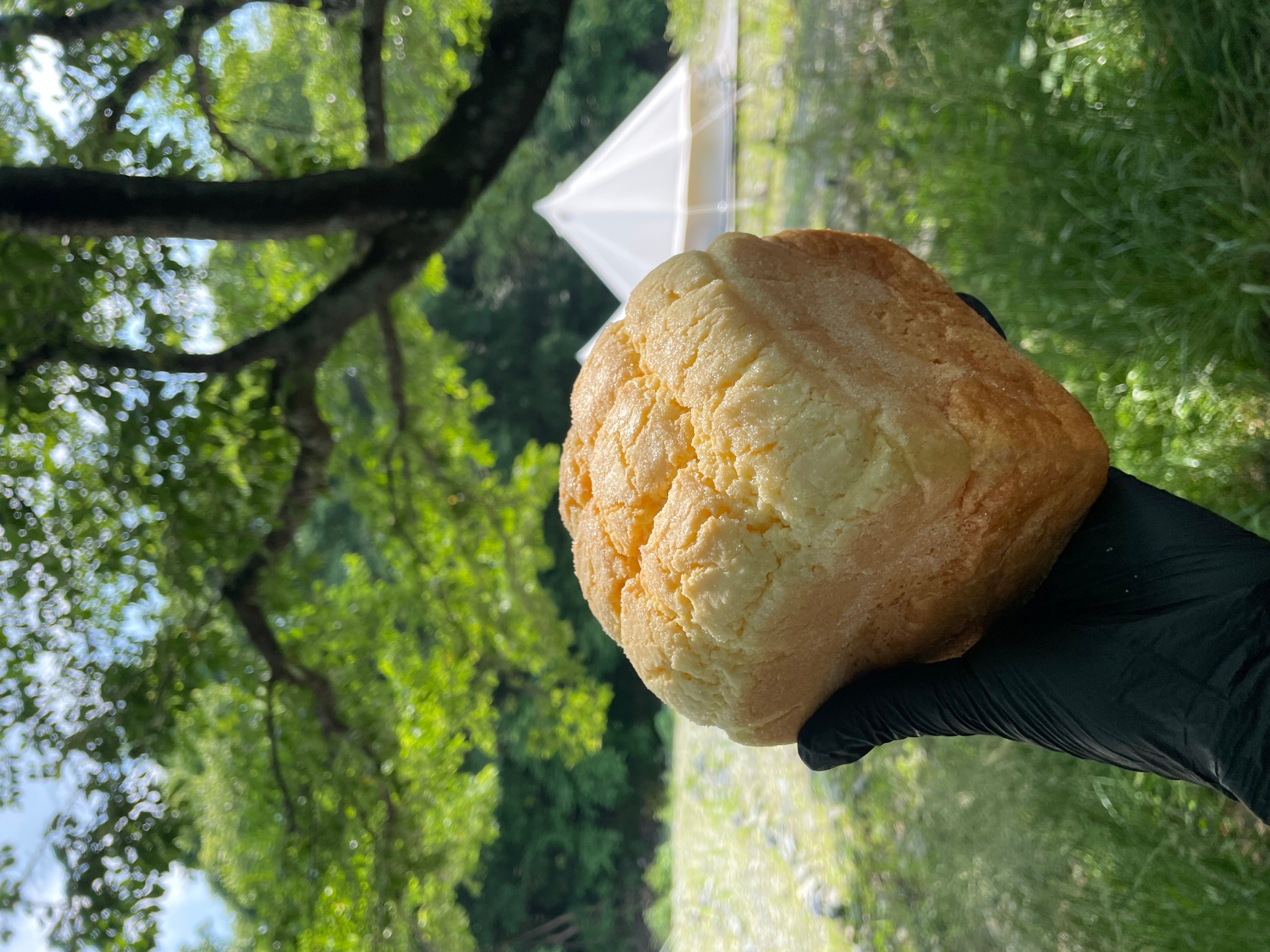 「この度小麦の奴隷当店は1周年を迎えます。いつもたくさんのご来店、ありがとうございます!これからも地域の皆さまに美味しい焼き立てパンをお届けするため、クルー一同頑張りますので、どうぞよろしくお願いいたします!」と話す店⻑れなぼうのおすすめは、同店オリジナル商品の「メロン食パン(700円)」と、全国の店舗で販売中の「いも吉(290円)」。