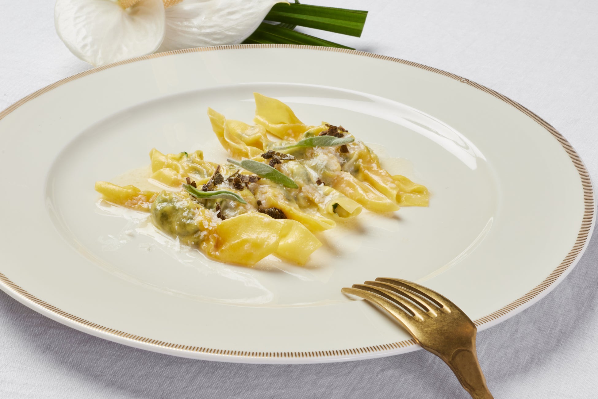 複雑な形状で知られるクラシックなトルテッリ ピアチェンティ―ナは、アルマーニ氏のお気に入りのレシピのひとつ。この特別なメニューは、ジョルジオ・アルマーニのかつての専属シェフであり、ジョルジオ アルマーニ本社のコーポレート エグゼクティブ シェフを務めるアントニオ・ダンジェロによって監修されました。