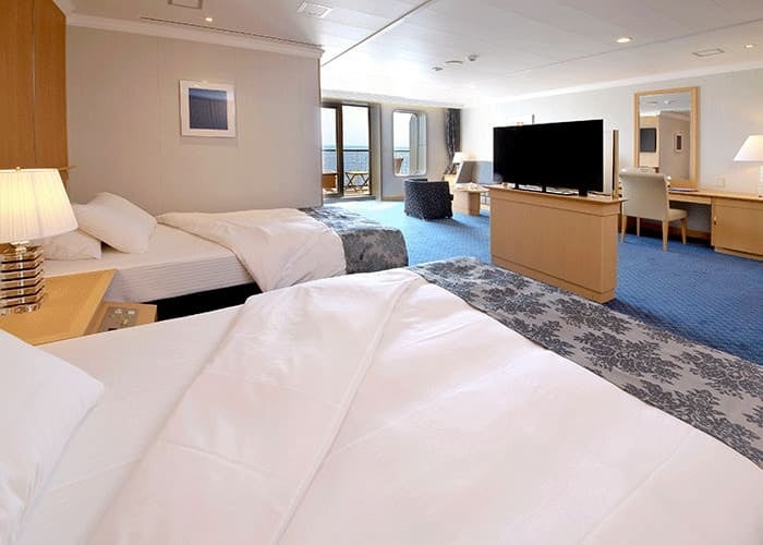 船室は、リーズナブルな2段ベッド大部屋タイプツーリストAから、専用テラス・全食事付のスイートタイプまでお選びいただけます。