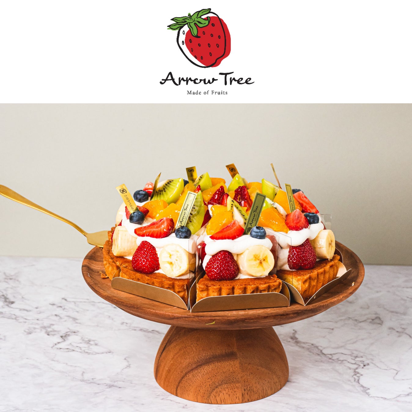 西宮・神戸でフレッシュフルーツを使ったケーキやお菓子を展開する洋菓子店。その時期一番のフルーツを味わってもらうことが、私たちの何よりの喜び。毎日、プロの目利きで旬の美味しさを。『アローツリー』のメニューに登場するのは、大切に取り揃えられた選りすぐりのフルーツ。時代が変わっても”おいしいフルーツ”こそが『アローツリー』のコンセプトです。